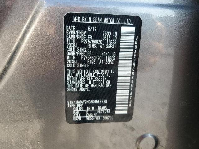 2019 NISSAN ARMADA SL 5.6L V8 4WD GRAY