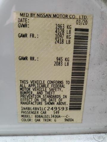 2020 NISSAN ALTIMA S 2.5L V4 WHITE